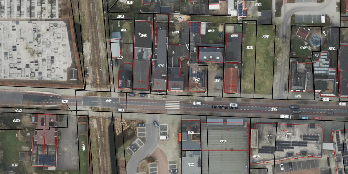Hammerstraat 34 is gelegen op kadastraal perceel HAM00G1934. Deze kadastrale aanduiding is uniek en wordt gebruikt door het Kadaster om eigendomsrechten en andere zakelijke rechten vast te leggen. Het perceel maakt onderdeel uit van de kadastrale gemeente Den Ham.