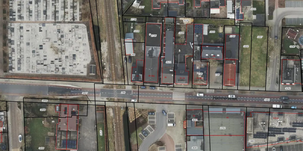 Hammerstraat 38 is gelegen op kadastraal perceel HAM00G2735. Deze kadastrale aanduiding is uniek en wordt gebruikt door het Kadaster om eigendomsrechten en andere zakelijke rechten vast te leggen. Het perceel maakt onderdeel uit van de kadastrale gemeente Den Ham.