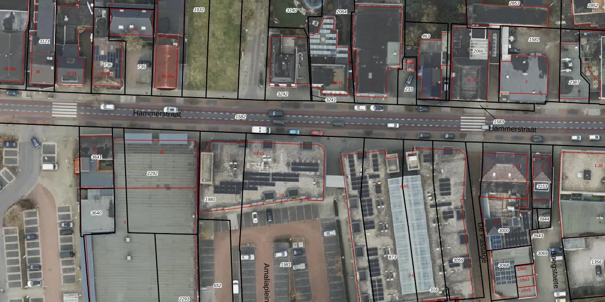 Het perceel waarop Hammerstraat 63 staat heeft een oppervlakte van 2785 m². Dit is een zeer groot perceel. De perceeloppervlakte wordt geregistreerd door het Kadaster. Gedetailleerde informatie over de maten van dit perceel kunt u vinden in het rapport Kadastrale kaart met maatvoering van Hammerstraat 63.