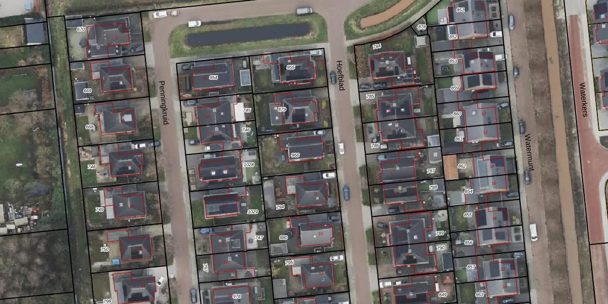 Het perceel waarop Hoefblad 6 staat heeft een oppervlakte van 345 m². Dit is een groot perceel. De perceeloppervlakte wordt geregistreerd door het Kadaster. Gedetailleerde informatie over de maten van dit perceel kunt u vinden in het rapport Kadastrale kaart met maatvoering van Hoefblad 6.