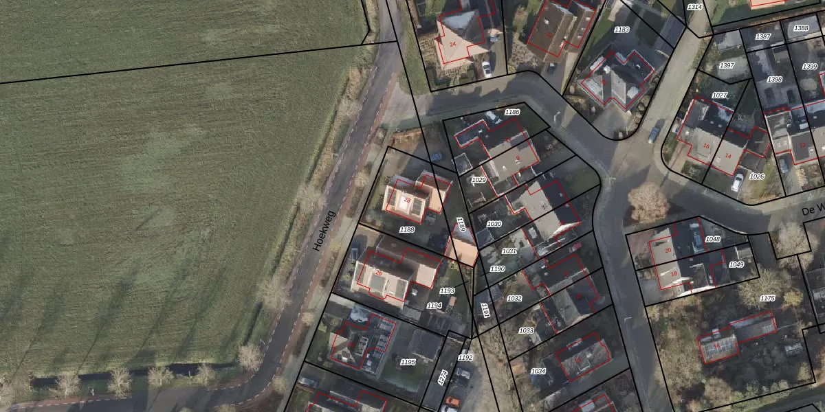 Hoekweg 28 is gelegen op kadastraal perceel HAM00L1188. Deze kadastrale aanduiding is uniek en wordt gebruikt door het Kadaster om eigendomsrechten en andere zakelijke rechten vast te leggen. Het perceel maakt onderdeel uit van de kadastrale gemeente Den Ham.