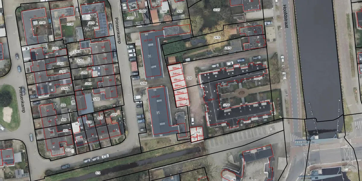 Het perceel waarop Hoofdstraat 54-bx5 staat heeft een oppervlakte van 1465 m². Dit is een zeer groot perceel. De perceeloppervlakte wordt geregistreerd door het Kadaster. Gedetailleerde informatie over de maten van dit perceel kunt u vinden in het rapport Kadastrale kaart met maatvoering van Hoofdstraat 54-bx5.