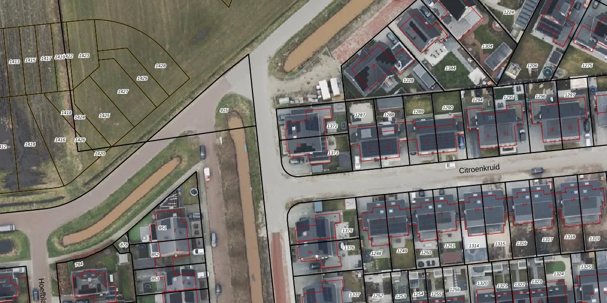 Gebruik de zoekbalk of klik op een perceel voor informatie over de adressen binnen dit perceel.