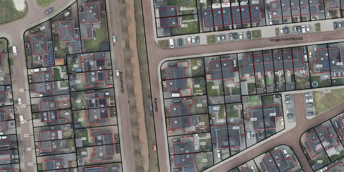 Gebruik de zoekbalk of klik op een perceel voor informatie over de adressen binnen dit perceel.