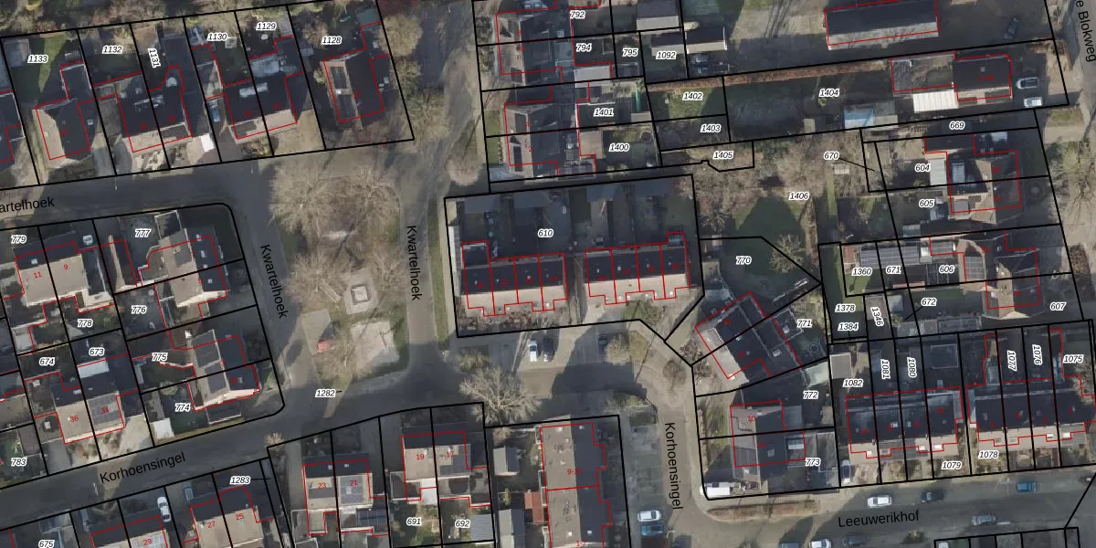 Korhoensingel 24 is gelegen op kadastraal perceel HAM00L610. Deze kadastrale aanduiding is uniek en wordt gebruikt door het Kadaster om eigendomsrechten en andere zakelijke rechten vast te leggen. Het perceel maakt onderdeel uit van de kadastrale gemeente Den Ham.