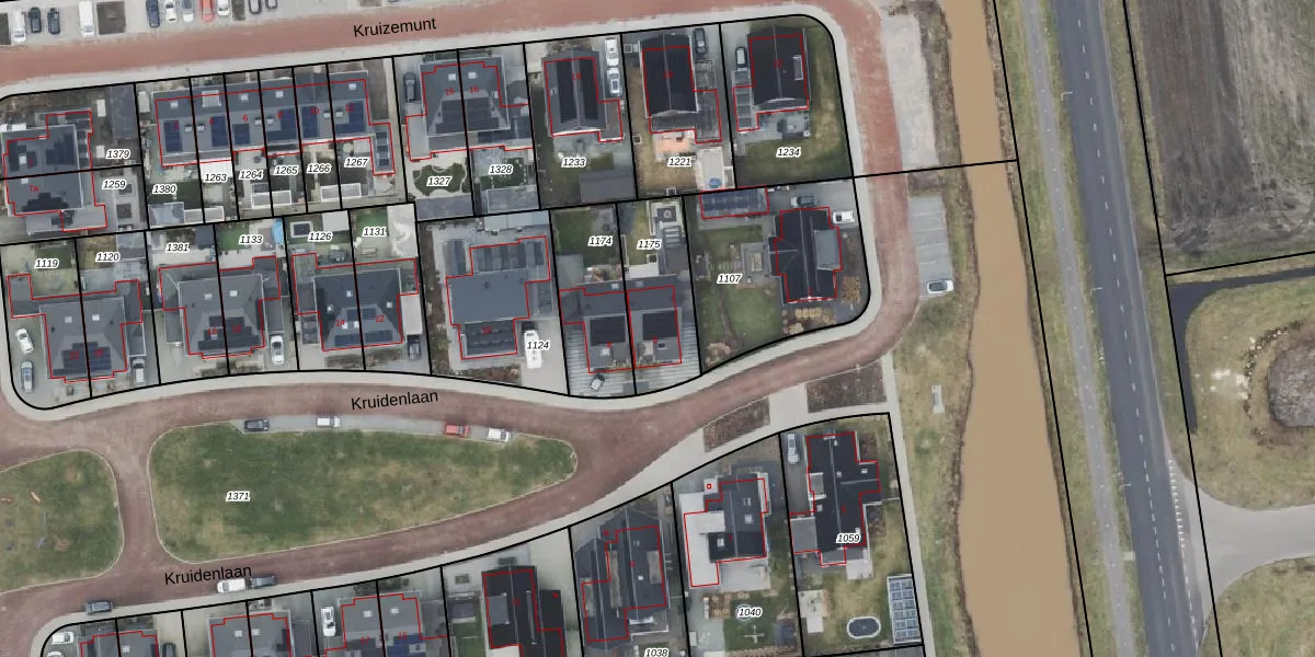 Gebruik de zoekbalk of klik op een perceel voor informatie over de adressen binnen dit perceel.