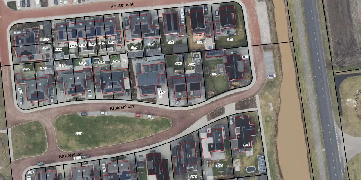 Kruidenlaan 6 is gelegen op kadastraal perceel HAM00K1174. Deze kadastrale aanduiding is uniek en wordt gebruikt door het Kadaster om eigendomsrechten en andere zakelijke rechten vast te leggen. Het perceel maakt onderdeel uit van de kadastrale gemeente Den Ham.
