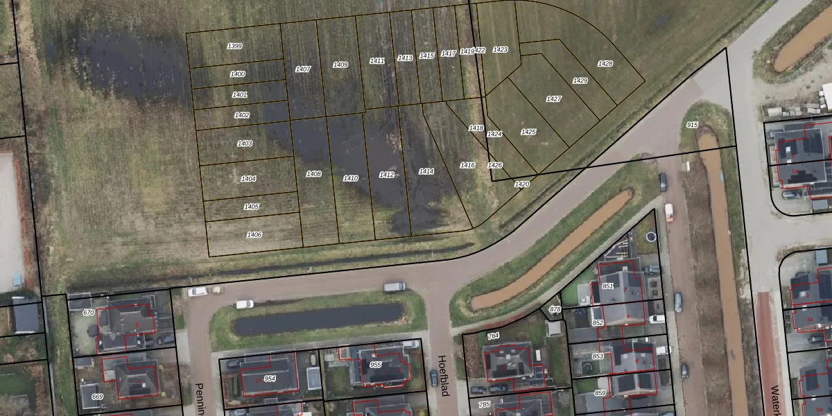 Gebruik de zoekbalk of klik op een perceel voor informatie over de adressen binnen dit perceel.