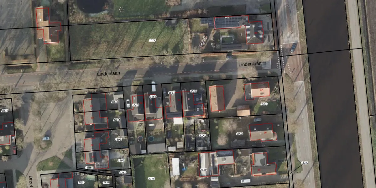 Lindenlaan 1 is gelegen op kadastraal perceel HAM00G3566. Deze kadastrale aanduiding is uniek en wordt gebruikt door het Kadaster om eigendomsrechten en andere zakelijke rechten vast te leggen. Het perceel maakt onderdeel uit van de kadastrale gemeente Den Ham.