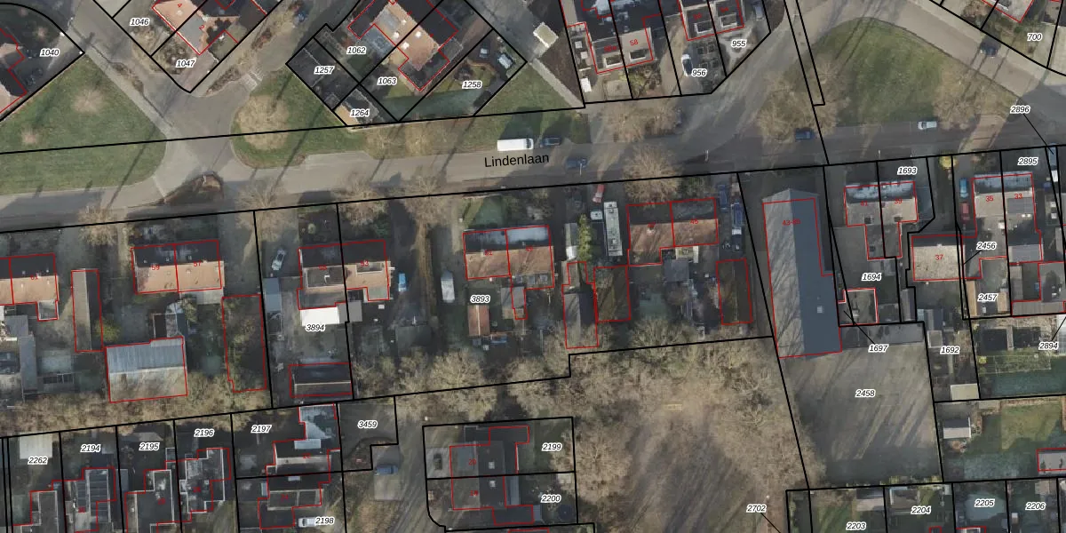 Het perceel waarop Lindenlaan 49 staat heeft een oppervlakte van 2635 m². Dit is een zeer groot perceel. De perceeloppervlakte wordt geregistreerd door het Kadaster. Gedetailleerde informatie over de maten van dit perceel kunt u vinden in het rapport Kadastrale kaart met maatvoering van Lindenlaan 49.