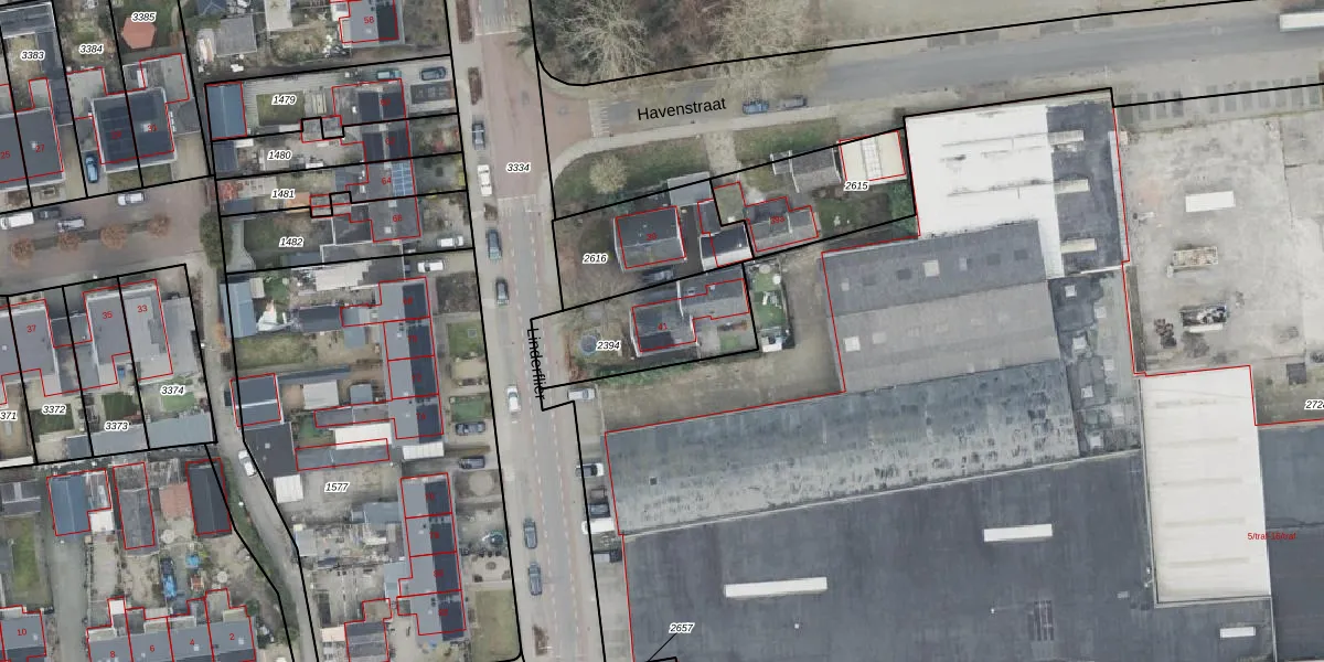 Gebruik de zoekbalk of klik op een perceel voor informatie over de adressen binnen dit perceel.