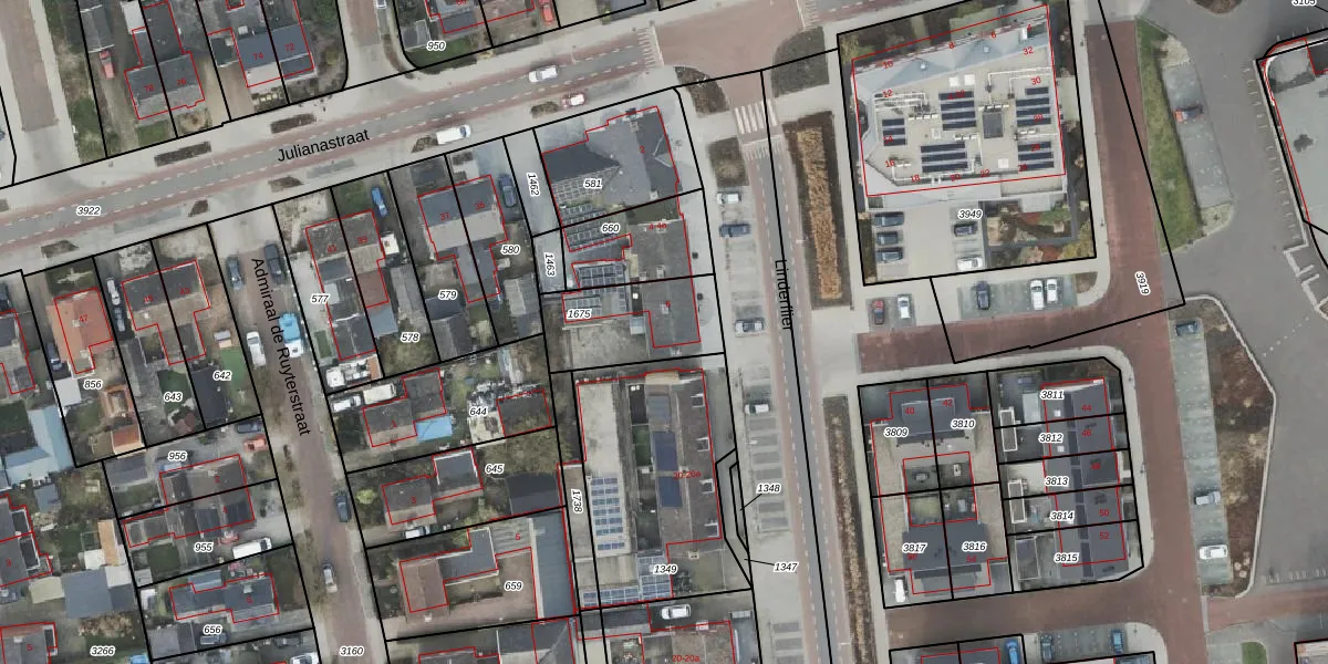 Het adres is gelegen op perceel 1675 in de sectie G en de kadastrale gemeente Den Ham. De kadastrale aanduiding is aldus HAM00-G-1675. Het perceel is kleiner dan gemiddeld in Den Ham. Het perceel is 318 m² groot, terwijl het gemiddelde ligt op 4695,15 m². De grootste perceeloppervlakte in de kadastrale gemeente is 57,2 ha. De kleinste oppervlakte bedraagt 0 m². Op het perceel liggen in totaal 2 adressen. In de Basisregistratie Kadaster (BRK) werden de grenzen van het perceel geregistreerd op 11-04-2002.