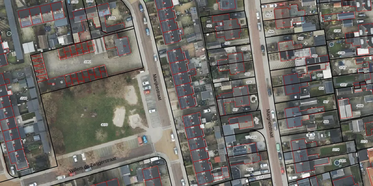 Het perceel waarop Marijkestraat 16 staat heeft een oppervlakte van 4990 m². Dit is een zeer groot perceel. De perceeloppervlakte wordt geregistreerd door het Kadaster. Gedetailleerde informatie over de maten van dit perceel kunt u vinden in het rapport Kadastrale kaart met maatvoering van Marijkestraat 16.