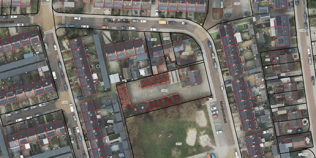 Het perceel waarop Marijkestraat 7-a-bx16 staat heeft een oppervlakte van 1247 m². Dit is een zeer groot perceel. De perceeloppervlakte wordt geregistreerd door het Kadaster. Gedetailleerde informatie over de maten van dit perceel kunt u vinden in het rapport Kadastrale kaart met maatvoering van Marijkestraat 7-a-bx16.