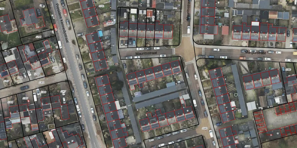 Het perceel waarop Mauritsstraat 20 staat heeft een oppervlakte van 1,1 ha. Dit is een zeer groot perceel. De perceeloppervlakte wordt geregistreerd door het Kadaster. Gedetailleerde informatie over de maten van dit perceel kunt u vinden in het rapport Kadastrale kaart met maatvoering van Mauritsstraat 20.