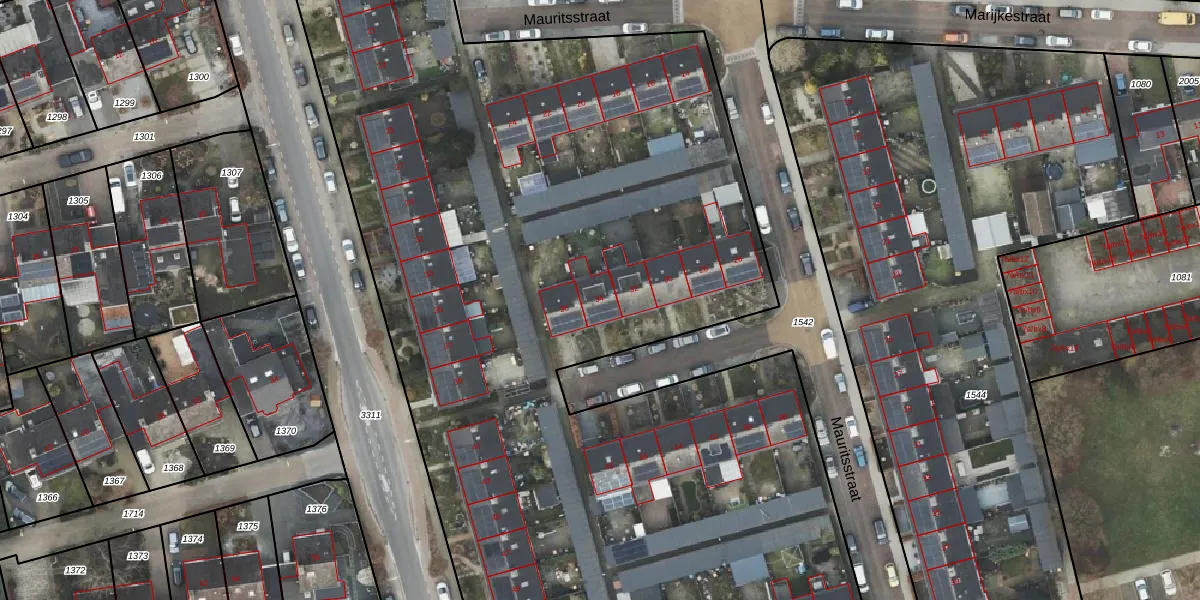 Het perceel waarop Mauritsstraat 34 staat heeft een oppervlakte van 1,1 ha. Dit is een zeer groot perceel. De perceeloppervlakte wordt geregistreerd door het Kadaster. Gedetailleerde informatie over de maten van dit perceel kunt u vinden in het rapport Kadastrale kaart met maatvoering van Mauritsstraat 34.