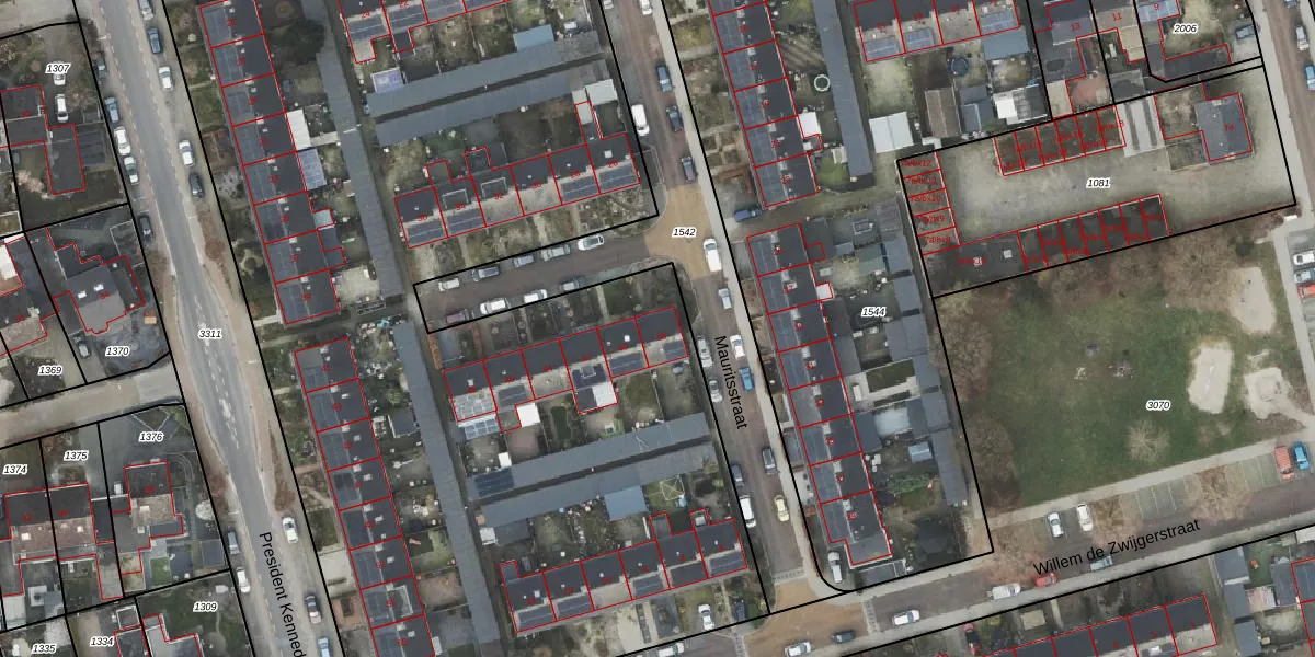 Het perceel waarop Mauritsstraat 38 staat heeft een oppervlakte van 1,1 ha. Dit is een zeer groot perceel. De perceeloppervlakte wordt geregistreerd door het Kadaster. Gedetailleerde informatie over de maten van dit perceel kunt u vinden in het rapport Kadastrale kaart met maatvoering van Mauritsstraat 38.
