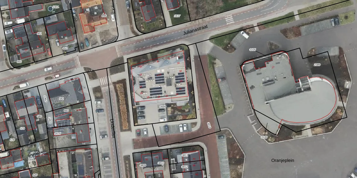 Het perceel waarop Oranjeplein 4 staat heeft een oppervlakte van 1415 m². Dit is een zeer groot perceel. De perceeloppervlakte wordt geregistreerd door het Kadaster. Gedetailleerde informatie over de maten van dit perceel kunt u vinden in het rapport Kadastrale kaart met maatvoering van Oranjeplein 4.