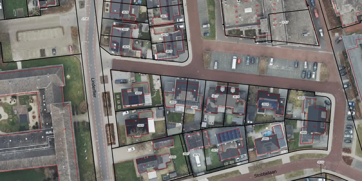 Gebruik de zoekbalk of klik op een perceel voor informatie over de adressen binnen dit perceel.