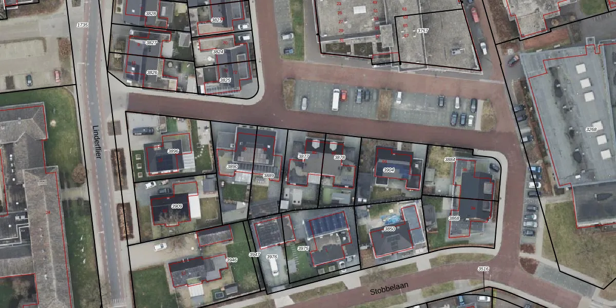 Gebruik de zoekbalk of klik op een perceel voor informatie over de adressen binnen dit perceel.