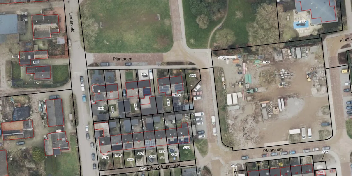 Gebruik de zoekbalk of klik op een perceel voor informatie over de adressen binnen dit perceel.
