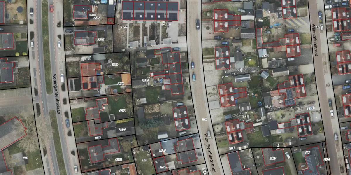 Het perceel waarop Prins Bernhardstraat 9 staat heeft een oppervlakte van 3023 m². Dit is een zeer groot perceel. De perceeloppervlakte wordt geregistreerd door het Kadaster. Gedetailleerde informatie over de maten van dit perceel kunt u vinden in het rapport Kadastrale kaart met maatvoering van Prins Bernhardstraat 9.