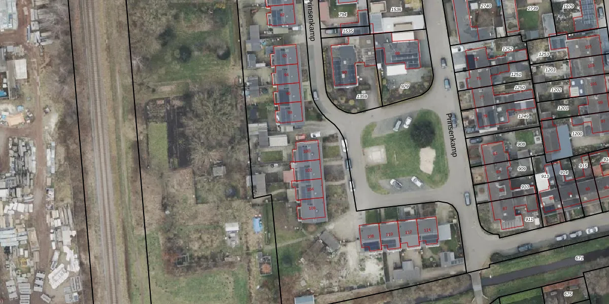 Het perceel waarop Prinsenkamp 100 staat heeft een oppervlakte van 1,1 ha. Dit is een zeer groot perceel. De perceeloppervlakte wordt geregistreerd door het Kadaster. Gedetailleerde informatie over de maten van dit perceel kunt u vinden in het rapport Kadastrale kaart met maatvoering van Prinsenkamp 100.