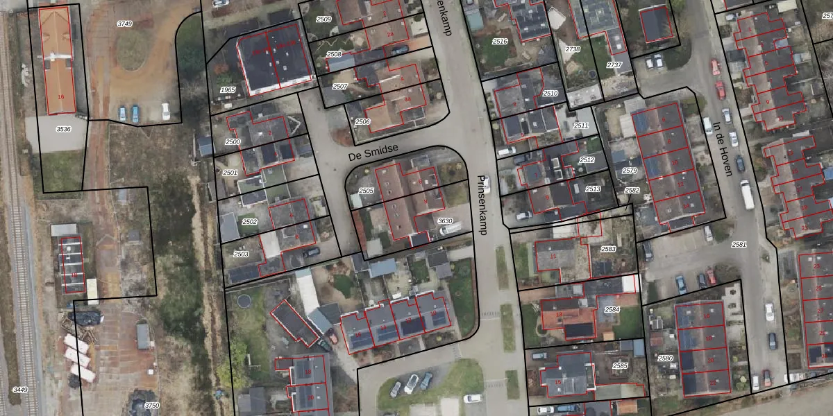 Gebruik de zoekbalk of klik op een perceel voor informatie over de adressen binnen dit perceel.