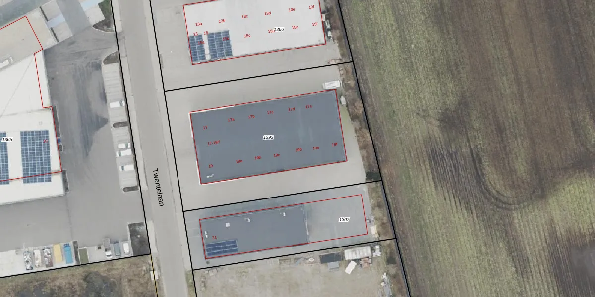 Twentelaan 19-e is gelegen op kadastraal perceel HAM00K1292. Deze kadastrale aanduiding is uniek en wordt gebruikt door het Kadaster om eigendomsrechten en andere zakelijke rechten vast te leggen. Het perceel maakt onderdeel uit van de kadastrale gemeente Den Ham.