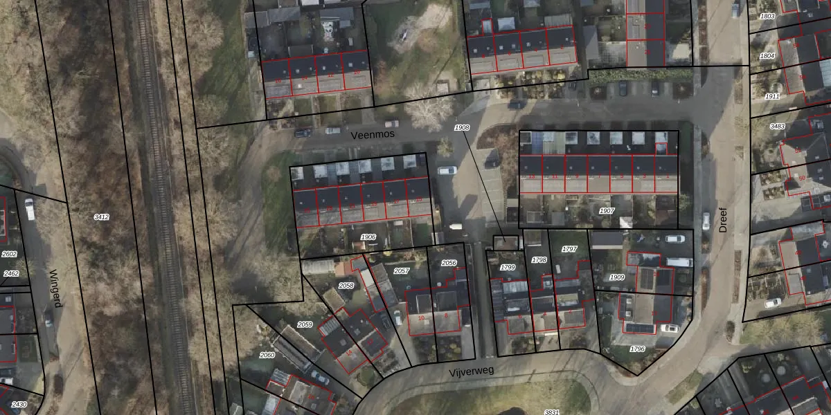 Het perceel waarop Veenmos 15 staat heeft een oppervlakte van 737 m². Dit is een groot perceel. De perceeloppervlakte wordt geregistreerd door het Kadaster. Gedetailleerde informatie over de maten van dit perceel kunt u vinden in het rapport Kadastrale kaart met maatvoering van Veenmos 15.