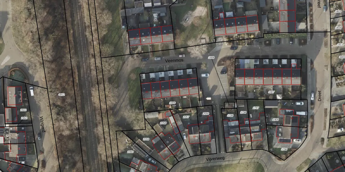 Het perceel waarop Veenmos 19 staat heeft een oppervlakte van 737 m². Dit is een groot perceel. De perceeloppervlakte wordt geregistreerd door het Kadaster. Gedetailleerde informatie over de maten van dit perceel kunt u vinden in het rapport Kadastrale kaart met maatvoering van Veenmos 19.