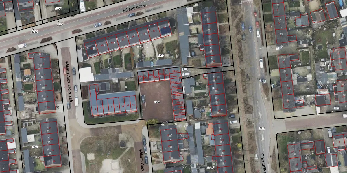 Het perceel waarop Willem Alexanderplein 15-bx10 staat heeft een oppervlakte van 875 m². Dit is een groot perceel. De perceeloppervlakte wordt geregistreerd door het Kadaster. Gedetailleerde informatie over de maten van dit perceel kunt u vinden in het rapport Kadastrale kaart met maatvoering van Willem Alexanderplein 15-bx10.