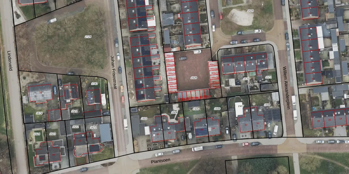 Het perceel waarop Willem Alexanderplein 30-bx31 staat heeft een oppervlakte van 869 m². Dit is een groot perceel. De perceeloppervlakte wordt geregistreerd door het Kadaster. Gedetailleerde informatie over de maten van dit perceel kunt u vinden in het rapport Kadastrale kaart met maatvoering van Willem Alexanderplein 30-bx31.
