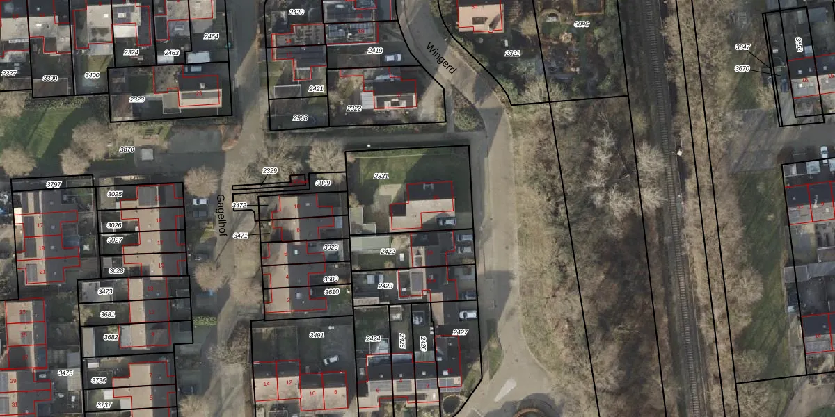 Het perceel waarop Wingerd 35 staat heeft een oppervlakte van 602 m². Dit is een groot perceel. De perceeloppervlakte wordt geregistreerd door het Kadaster. Gedetailleerde informatie over de maten van dit perceel kunt u vinden in het rapport Kadastrale kaart met maatvoering van Wingerd 35.