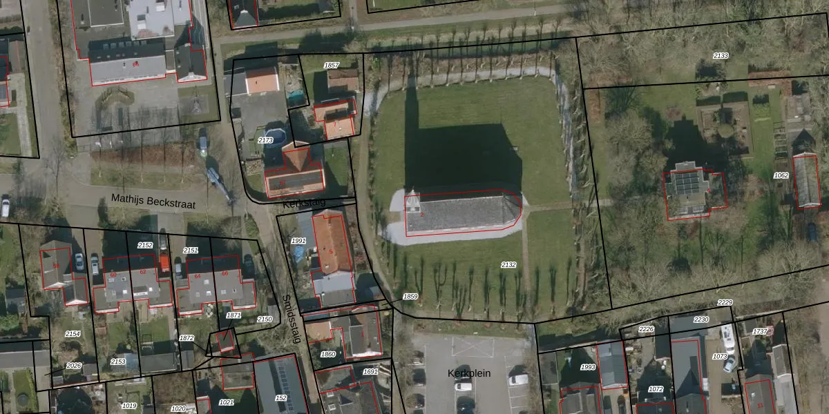 Kerkplein 2 is gelegen op kadastraal perceel VWE00C2132. Deze kadastrale aanduiding is uniek en wordt gebruikt door het Kadaster om eigendomsrechten en andere zakelijke rechten vast te leggen. Het perceel maakt onderdeel uit van de kadastrale gemeente Lieve Vrouwe Parochie.