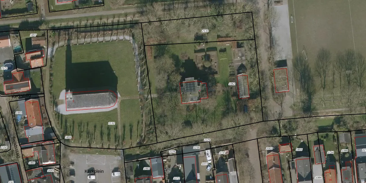 Het perceel waarop Kerkplein 4 staat heeft een oppervlakte van 2960 m². Dit is een zeer groot perceel. De perceeloppervlakte wordt geregistreerd door het Kadaster. Gedetailleerde informatie over de maten van dit perceel kunt u vinden in het rapport Kadastrale kaart met maatvoering van Kerkplein 4.
