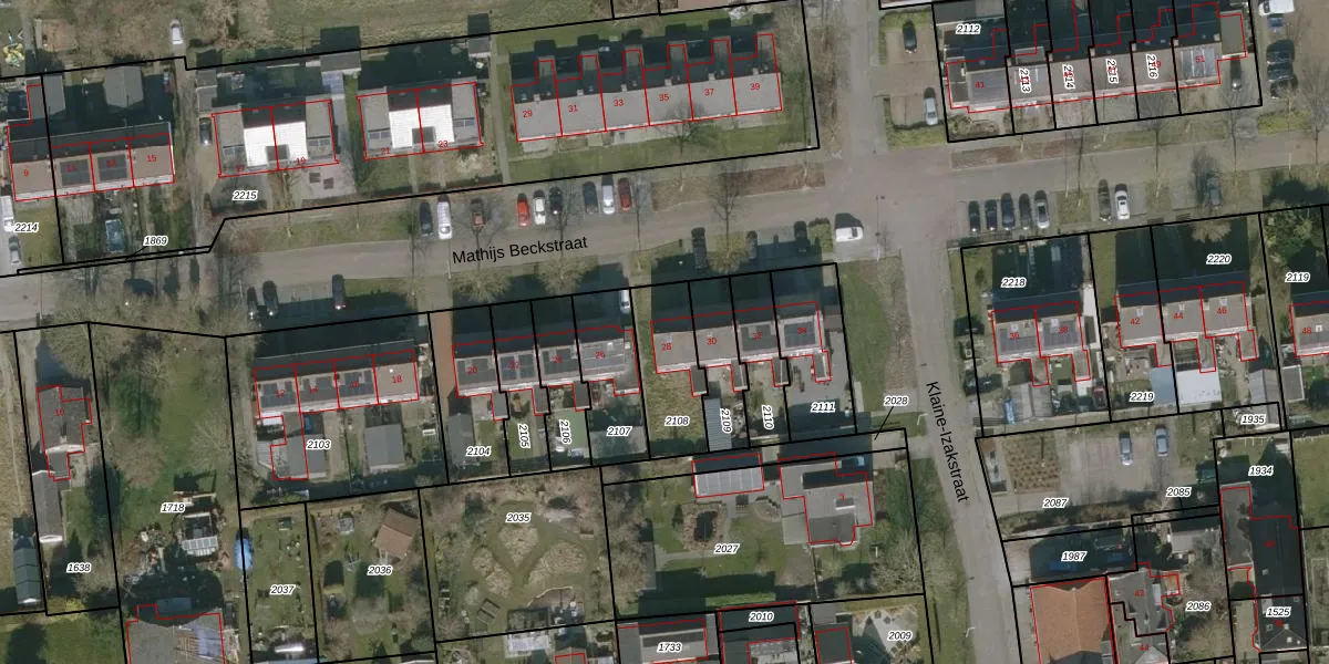 Gebruik de zoekbalk of klik op een perceel voor informatie over de adressen binnen dit perceel.
