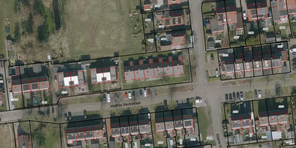 Het perceel waarop Mathijs Beckstraat 33 staat heeft een oppervlakte van 2779 m². Dit is een zeer groot perceel. De perceeloppervlakte wordt geregistreerd door het Kadaster. Gedetailleerde informatie over de maten van dit perceel kunt u vinden in het rapport Kadastrale kaart met maatvoering van Mathijs Beckstraat 33.