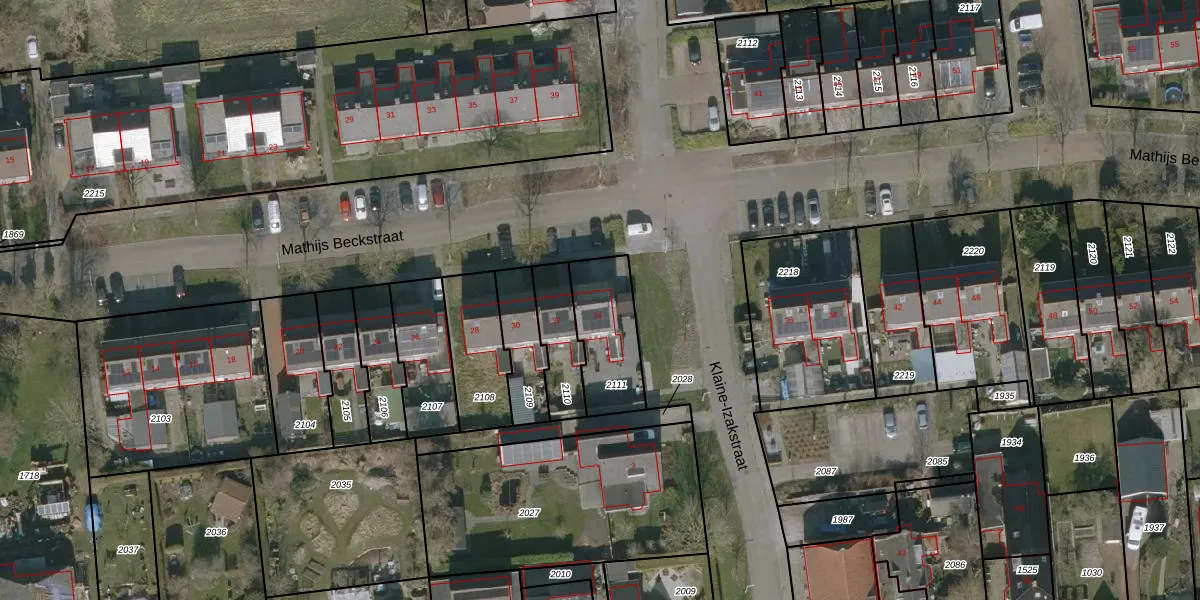 Gebruik de zoekbalk of klik op een perceel voor informatie over de adressen binnen dit perceel.