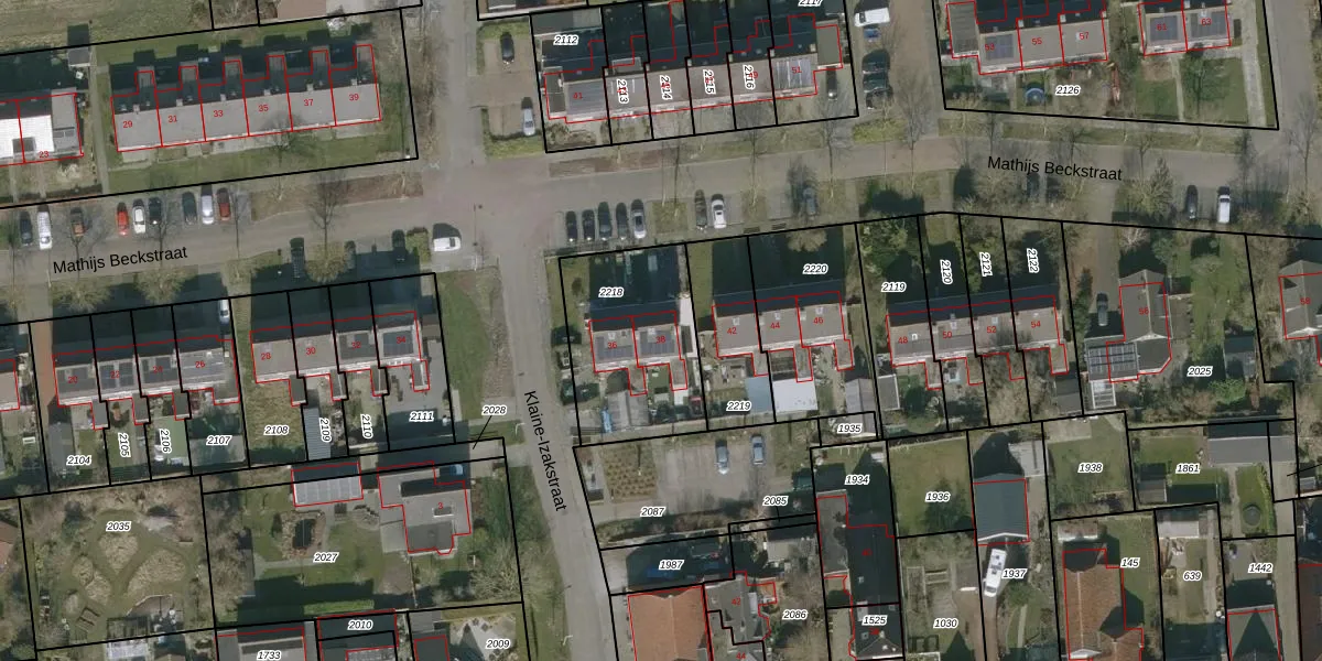 Het perceel waarop Mathijs Beckstraat 38 staat heeft een oppervlakte van 555 m². Dit is een groot perceel. De perceeloppervlakte wordt geregistreerd door het Kadaster. Gedetailleerde informatie over de maten van dit perceel kunt u vinden in het rapport Kadastrale kaart met maatvoering van Mathijs Beckstraat 38.