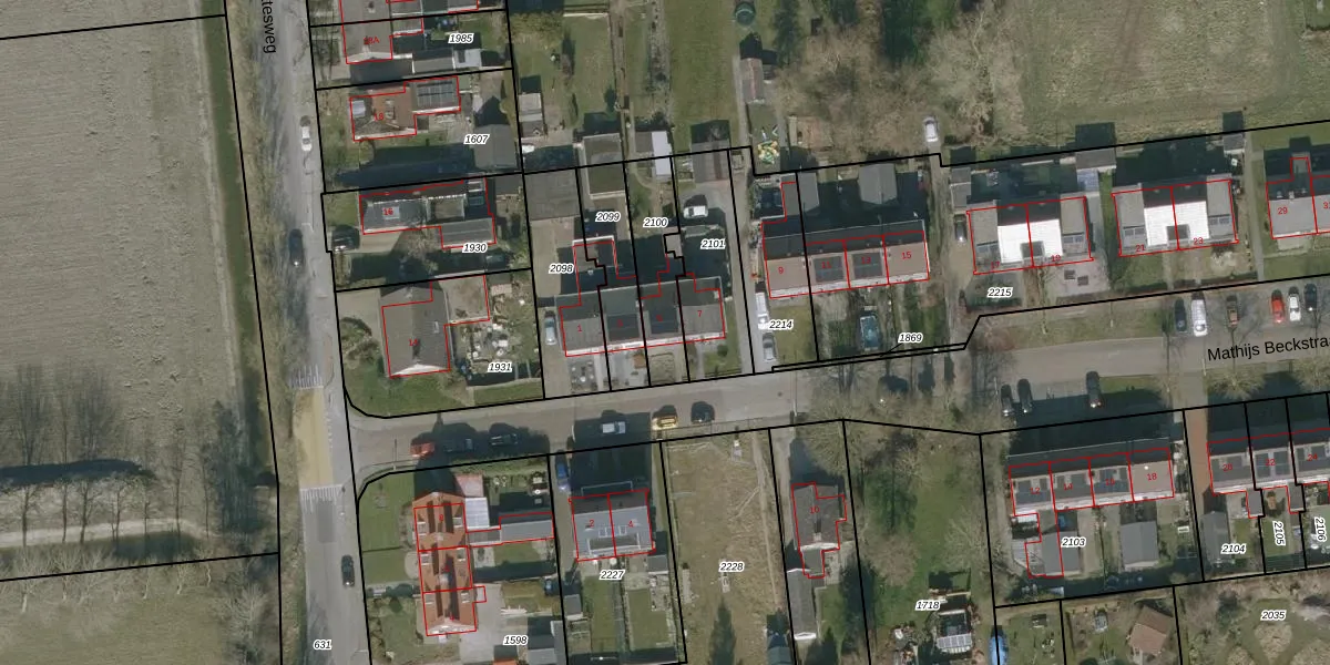 Mathijs Beckstraat 5 is gelegen op kadastraal perceel VWE00C2100. Deze kadastrale aanduiding is uniek en wordt gebruikt door het Kadaster om eigendomsrechten en andere zakelijke rechten vast te leggen. Het perceel maakt onderdeel uit van de kadastrale gemeente Lieve Vrouwe Parochie.