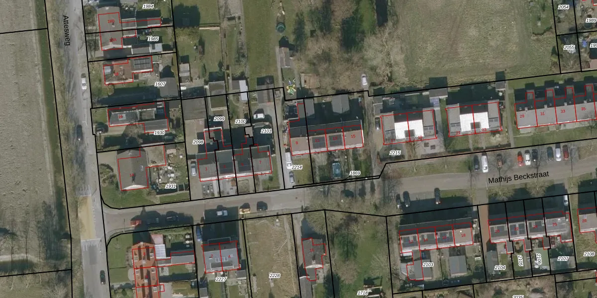 Mathijs Beckstraat 9 is gelegen op kadastraal perceel VWE00C2214. Deze kadastrale aanduiding is uniek en wordt gebruikt door het Kadaster om eigendomsrechten en andere zakelijke rechten vast te leggen. Het perceel maakt onderdeel uit van de kadastrale gemeente Lieve Vrouwe Parochie.
