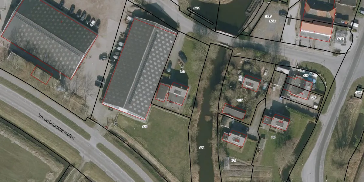 Het perceel waarop Vrouwbuurtstermolen 5 staat heeft een oppervlakte van 870 m². Dit is een groot perceel. De perceeloppervlakte wordt geregistreerd door het Kadaster. Gedetailleerde informatie over de maten van dit perceel kunt u vinden in het rapport Kadastrale kaart met maatvoering van Vrouwbuurtstermolen 5.