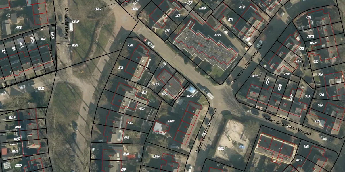 Gebruik de zoekbalk of klik op een perceel voor informatie over de adressen binnen dit perceel.