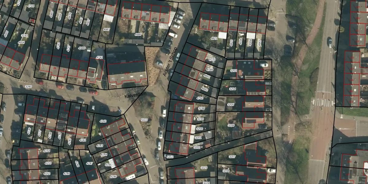 Gebruik de zoekbalk of klik op een perceel voor informatie over de adressen binnen dit perceel.