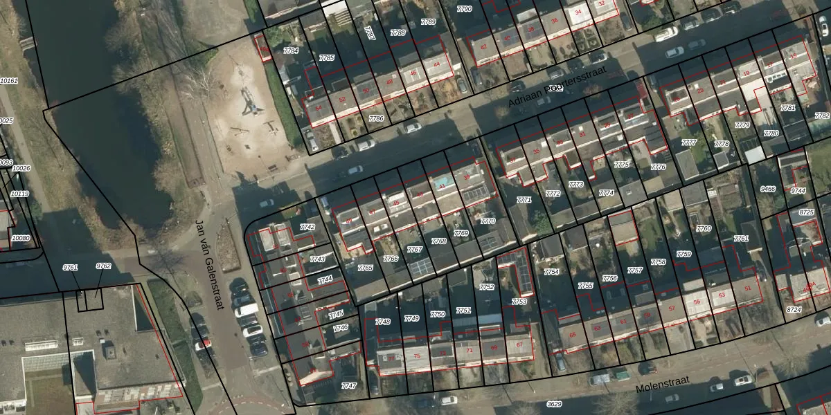 Het perceel waarop Adriaan Poortersstraat 43 staat heeft een oppervlakte van 169 m². Dit is een middelgroot perceel. De perceeloppervlakte wordt geregistreerd door het Kadaster. Gedetailleerde informatie over de maten van dit perceel kunt u vinden in het rapport Kadastrale kaart met maatvoering van Adriaan Poortersstraat 43.