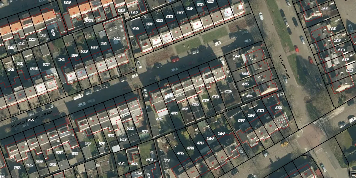 Gebruik de zoekbalk of klik op een perceel voor informatie over de adressen binnen dit perceel.