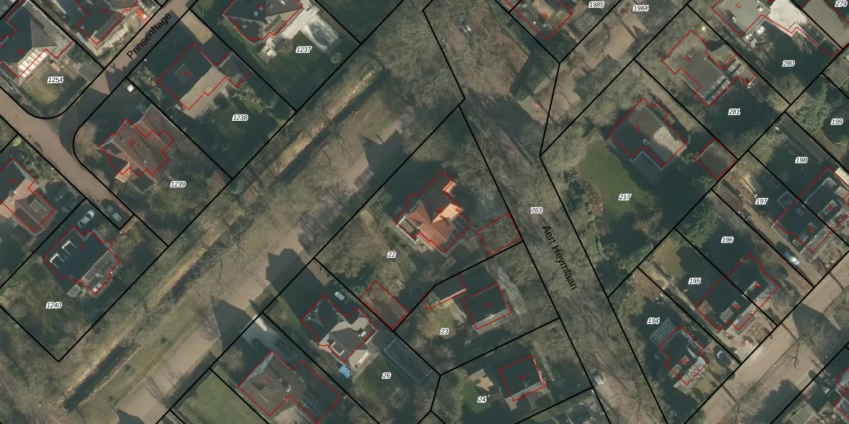 Het perceel waarop Aert Heymlaan 50 staat heeft een oppervlakte van 1220 m². Dit is een zeer groot perceel. De perceeloppervlakte wordt geregistreerd door het Kadaster. Gedetailleerde informatie over de maten van dit perceel kunt u vinden in het rapport Kadastrale kaart met maatvoering van Aert Heymlaan 50.