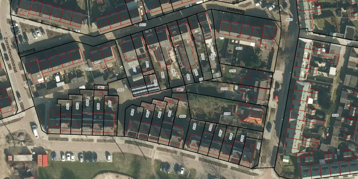 Gebruik de zoekbalk of klik op een perceel voor informatie over de adressen binnen dit perceel.