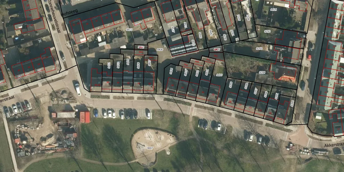 Akkerstraat 36 is gelegen op kadastraal perceel VUG00B9404. Deze kadastrale aanduiding is uniek en wordt gebruikt door het Kadaster om eigendomsrechten en andere zakelijke rechten vast te leggen. Het perceel maakt onderdeel uit van de kadastrale gemeente Vught.